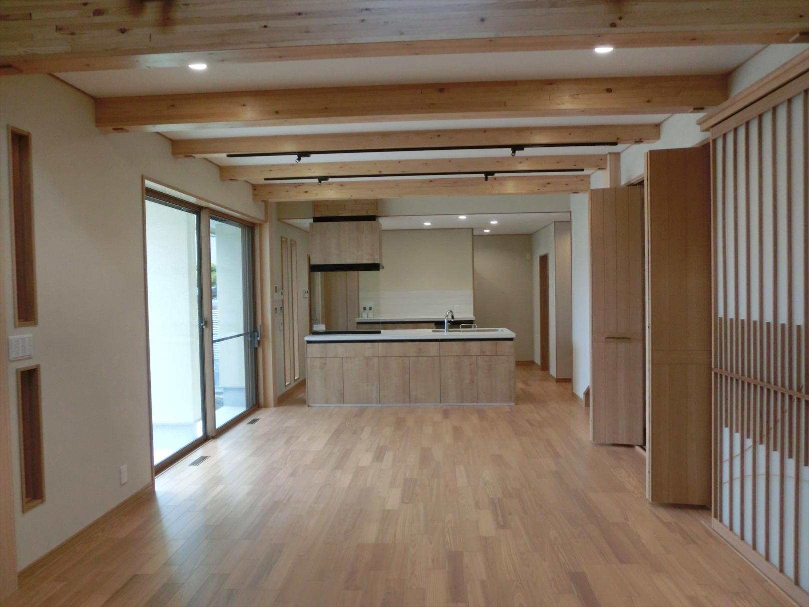 木のぬくもりが家じゅうに広がる、心地よい住まいです。無垢材の床や天井がやさしく